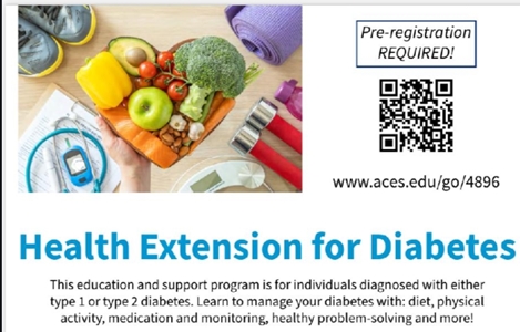 Talladega – With diabetes reported at epidemic levels across the country, the Talladega County office of the Alabama Extension Service is addressing the problem, putting together a free education and support series of programs for individuals dianosed with either Type 1 or Type 2 diabetes.